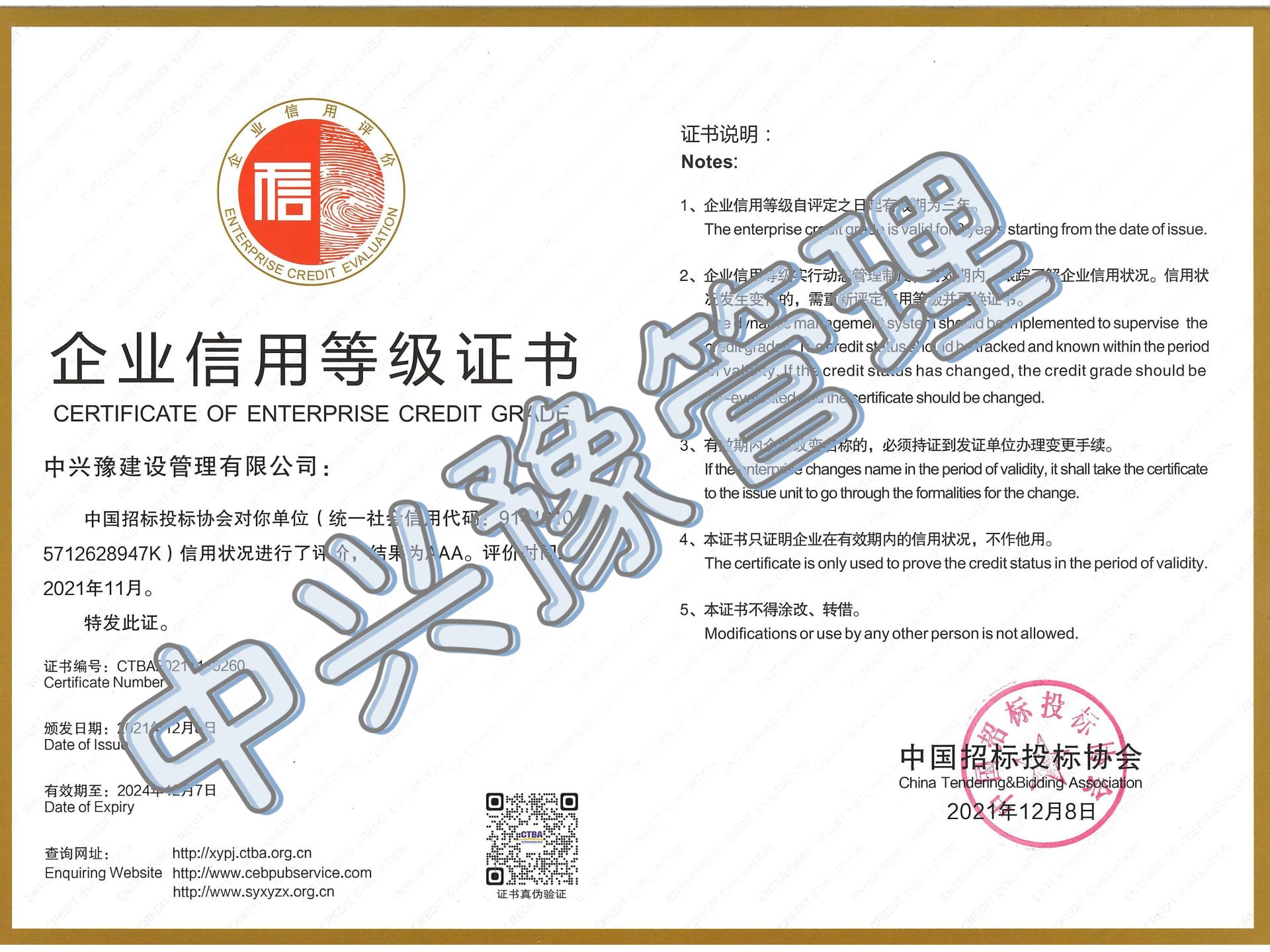 2021年度招標(biāo)代理機(jī)構(gòu)信用評(píng)價(jià)AAA證書-公司榮譽(yù)
