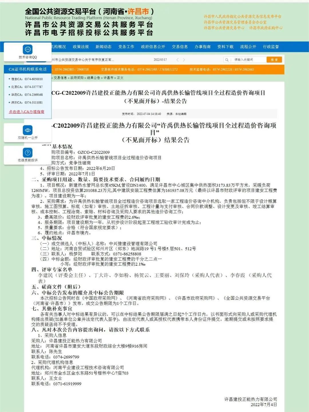 近日,中興豫建設(shè)管理有限公司在“許禹供熱長輸管線項目全過程造價咨詢項目”招投標活動中成功中標。
