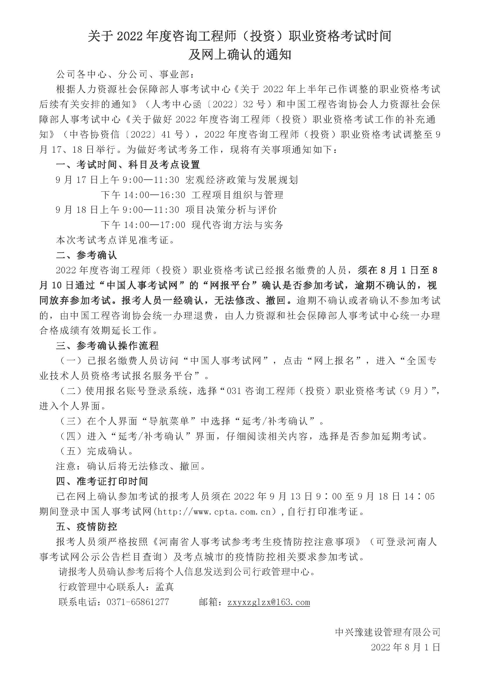 關(guān)于2022年度咨詢工程師(投資)職業(yè)資格考試時(shí)間及網(wǎng)上確認(rèn)的通知