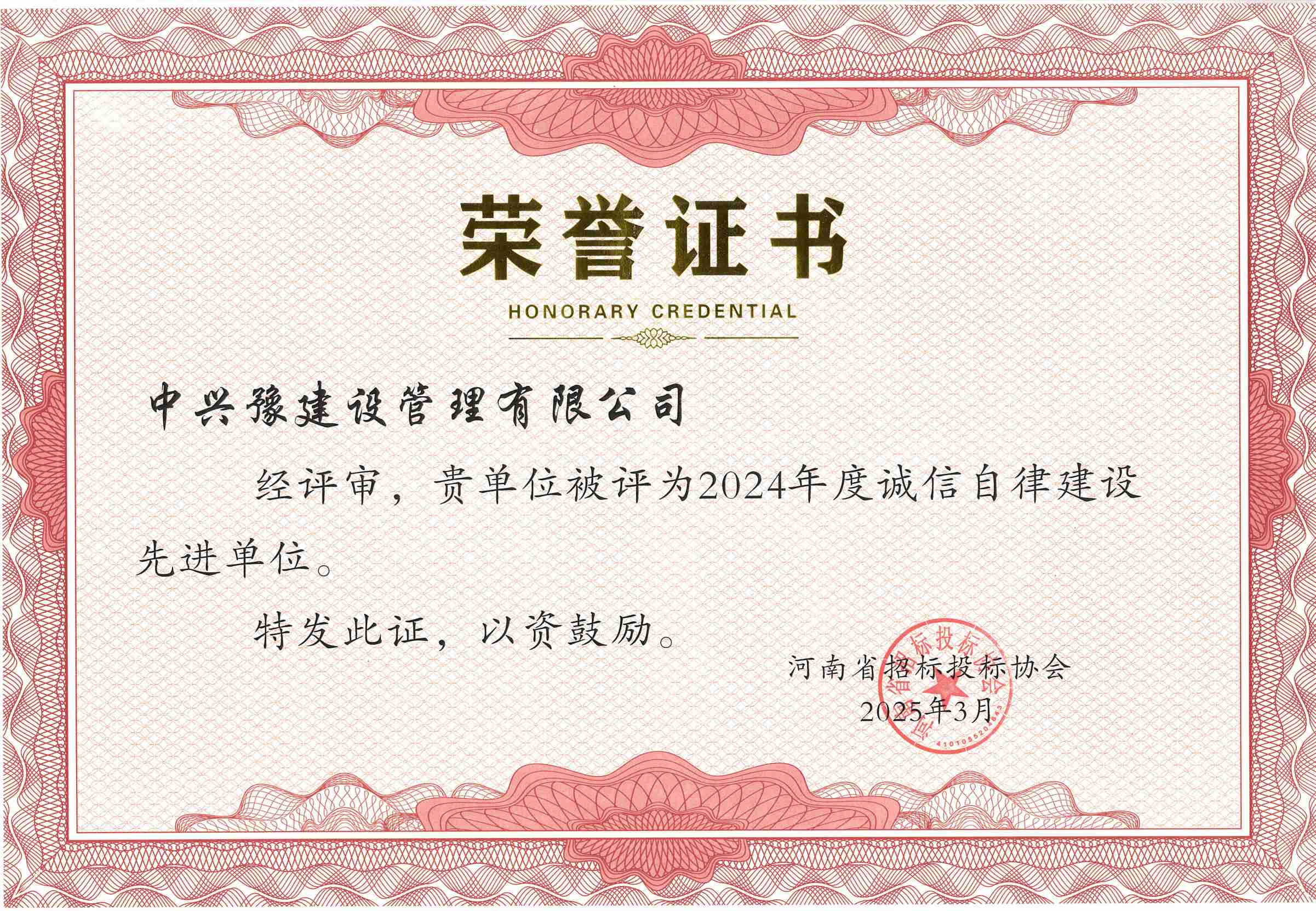 近日,河南省招標(biāo)投標(biāo)協(xié)會(huì)發(fā)布關(guān)于表彰2024年度誠信自律建設(shè)先進(jìn)單位、先進(jìn)個(gè)人的決定。其中,中興豫建設(shè)管理有限公司榮幸入選“2024年度誠信自律建設(shè)先進(jìn)單位”。
