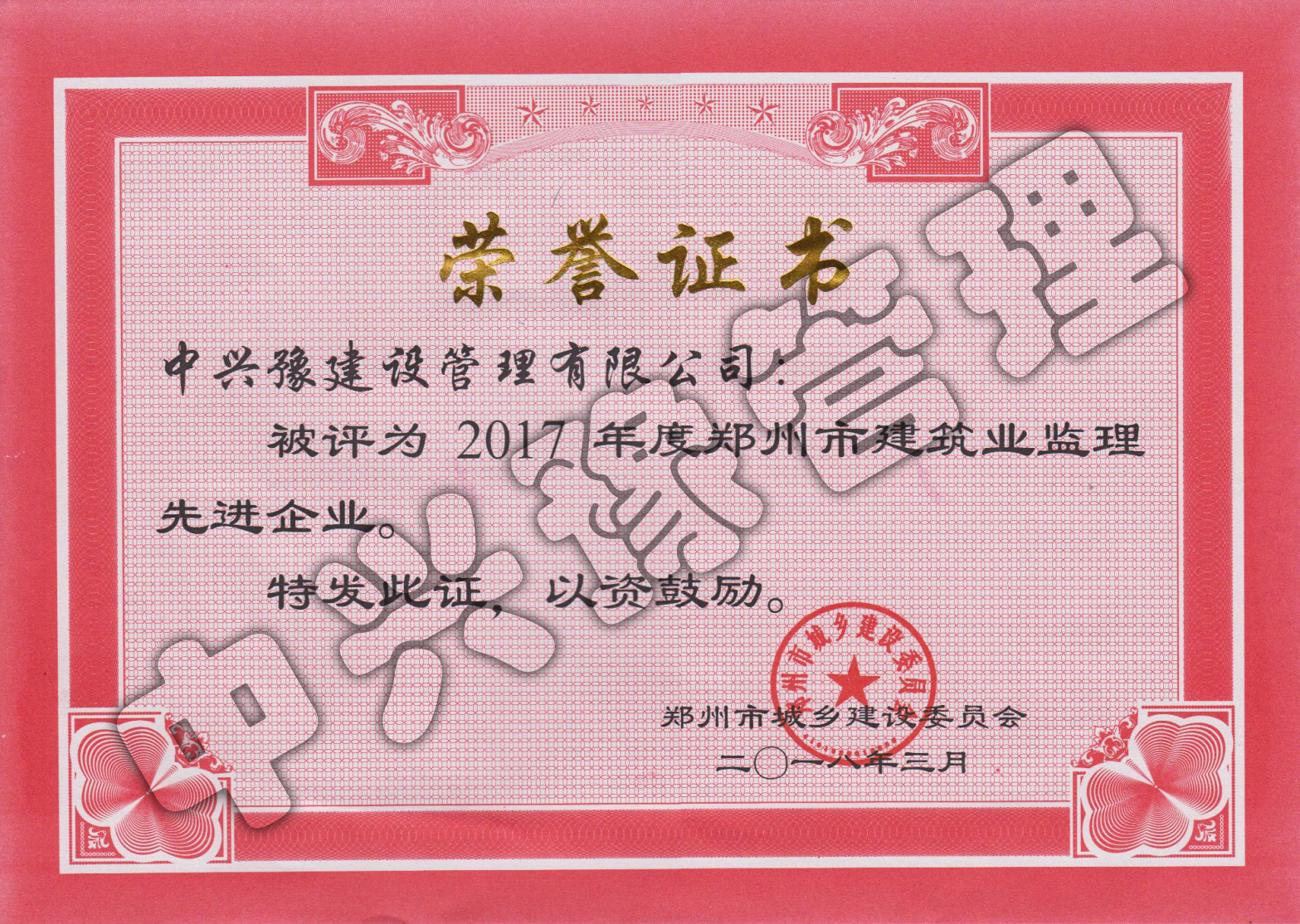 2017年度鄭州市先進(jìn)監(jiān)理企業(yè)-公司榮譽