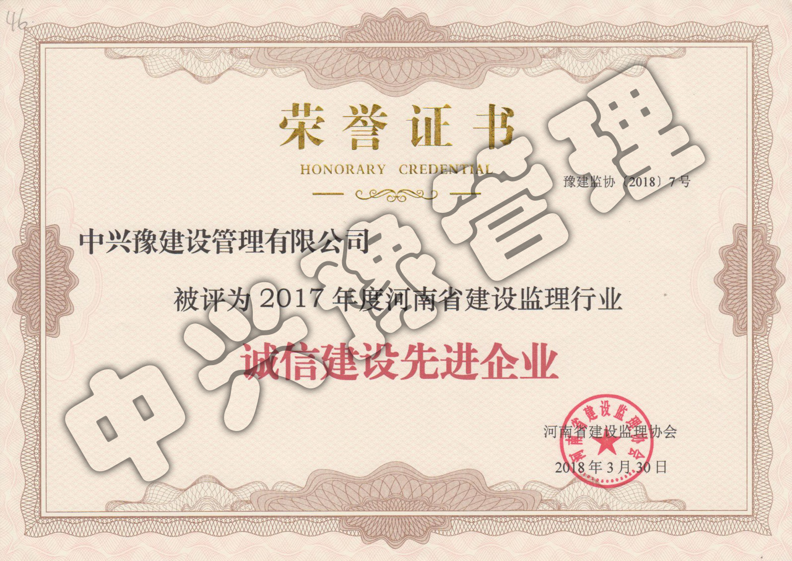2017年度誠信建設(shè)監(jiān)理企業(yè)-公司榮譽(yù)
