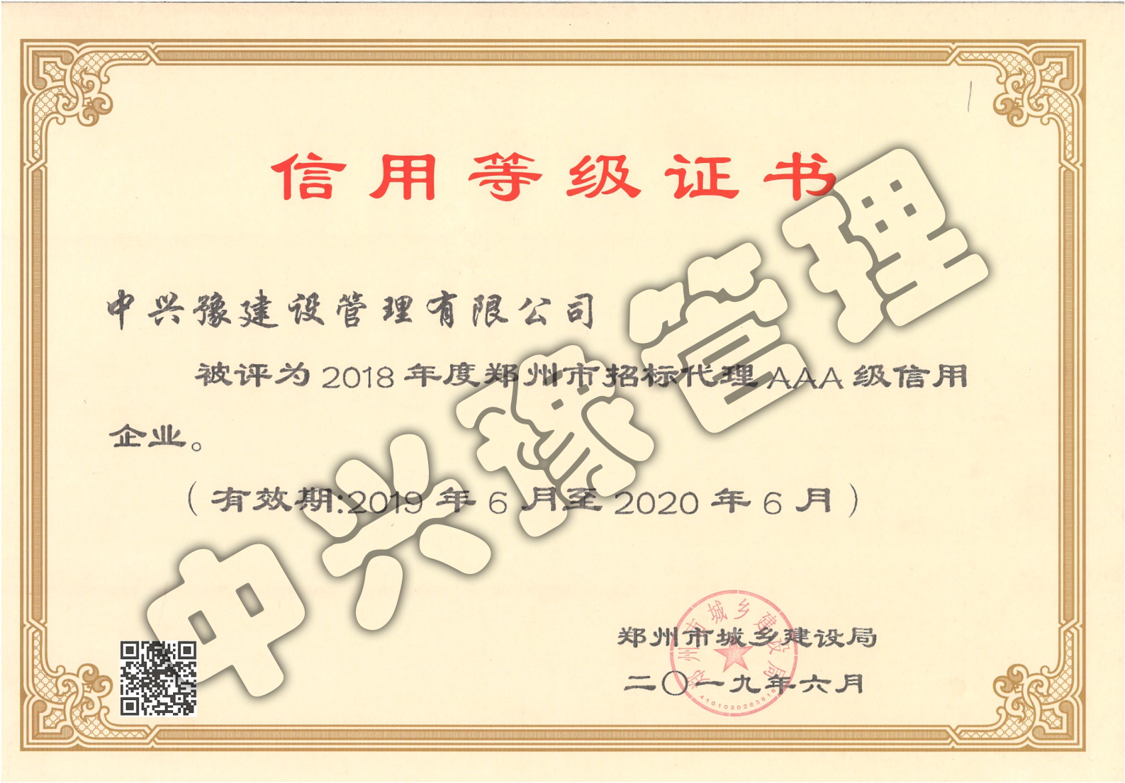 2018年度鄭州市招標(biāo)代理先進(jìn)單位-公司榮譽(yù)