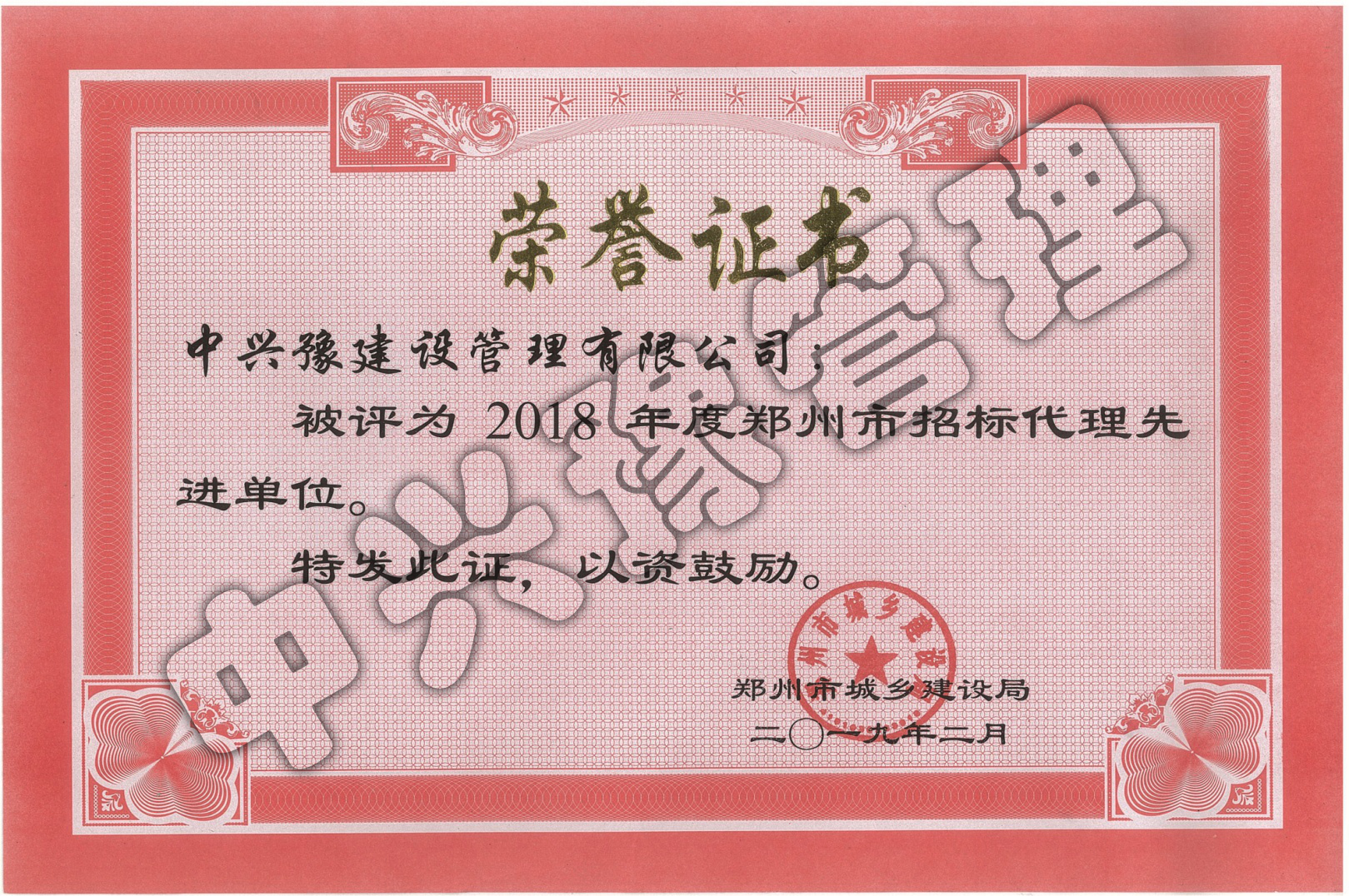 2018年度鄭州市招標(biāo)代理先進(jìn)單位-公司榮譽