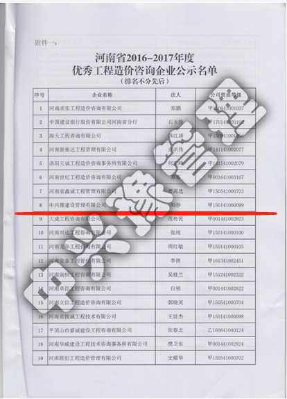 2016-2017年優(yōu)秀造價(jià)企業(yè)-公司榮譽(yù)