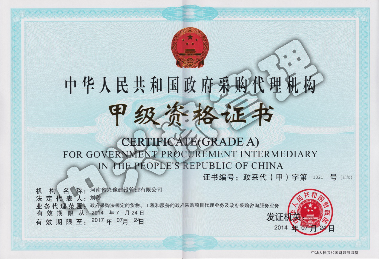 甲級政府采購代理-公司資質(zhì)